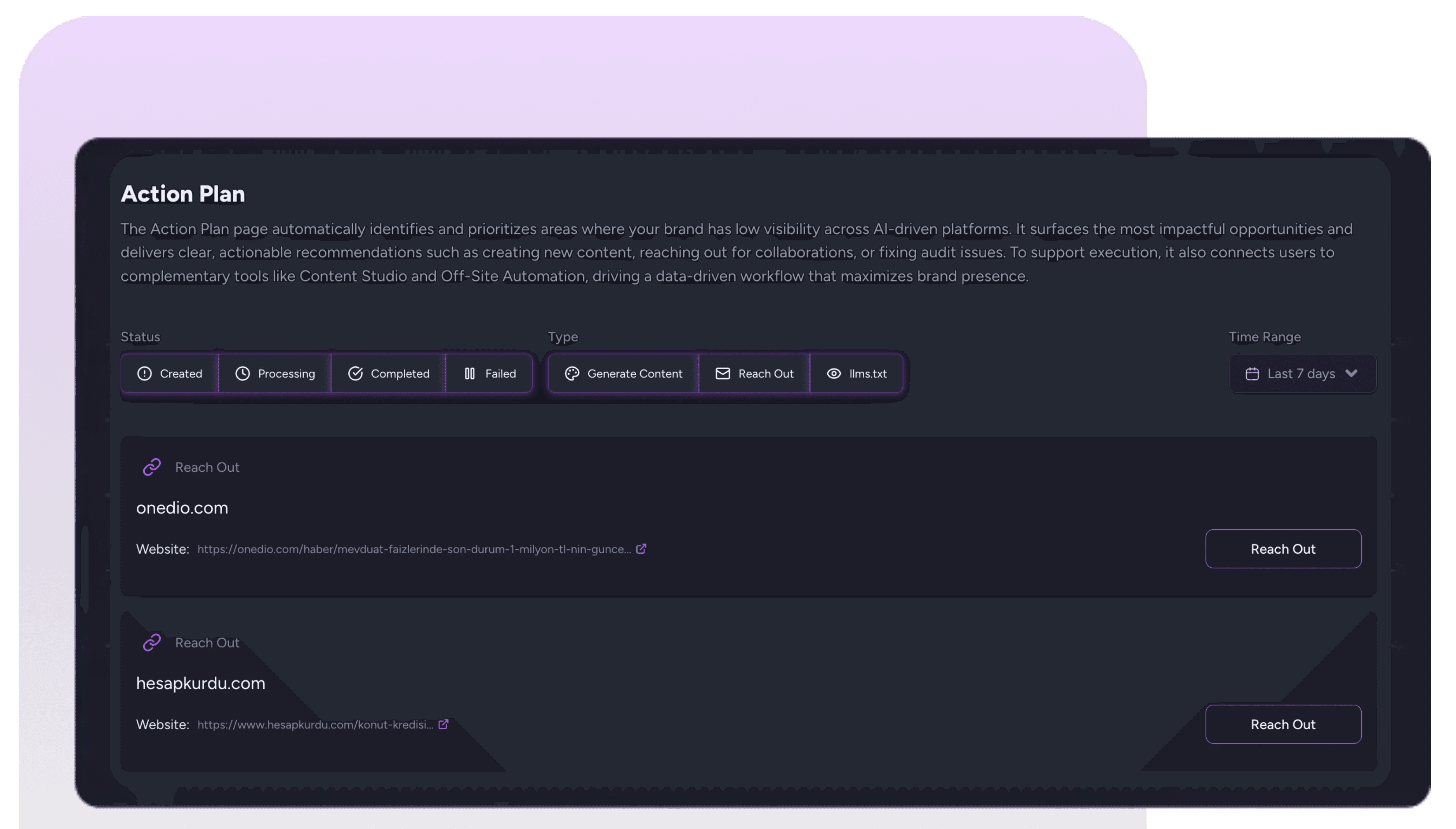 Use Maxeo’s action plan to improve visibility over time. Create AEO-ready content, reach out to relevant third-party sources, and use AI-generated outreach suggestions to address gaps and strengthen representation.